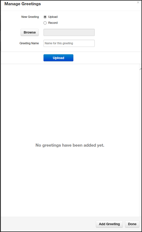 - Click Add Greeting at the bottom of the Manage Greetings page, and then click Done to
